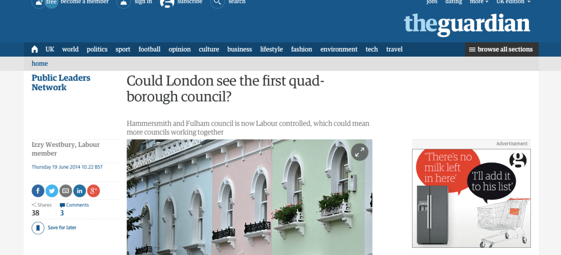 Miscellaneous, The Guardian / The ObserverHammersmith and Fulham council is now Labour controlled, which could mean more councils working together.