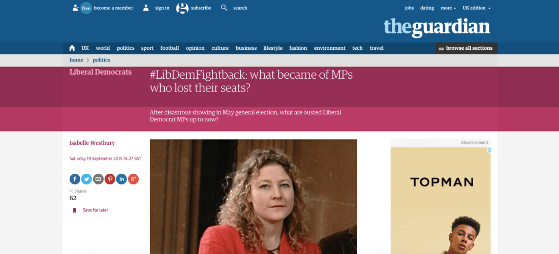 Miscellaneous, The Guardian / The ObserverAfter a disastrous showing in May general election, what are ousted Liberal Democrat MPs up to now.