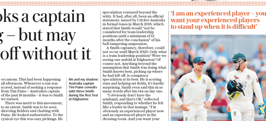 The Telegraph: Steve Smith looks every bit Australia’s captain in waiting – but should not be